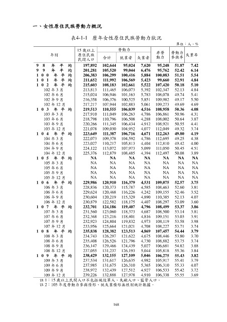 表4-1-1 歷年女性原住民族勞動力狀況