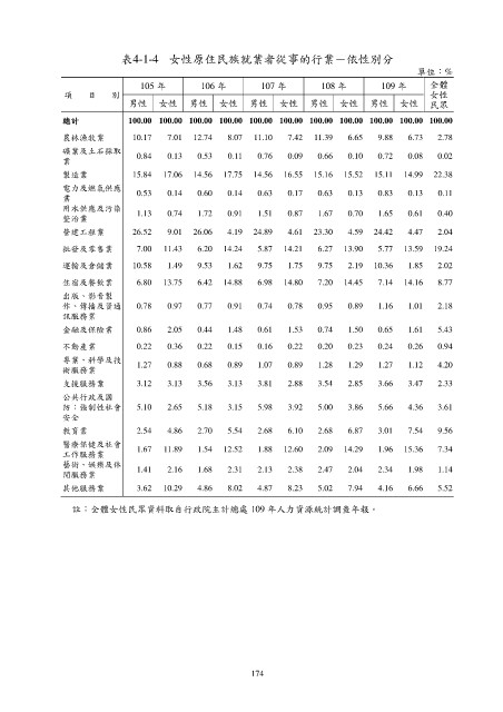 表4-1-4 女性原住民族就業者從事的行業-依性別分