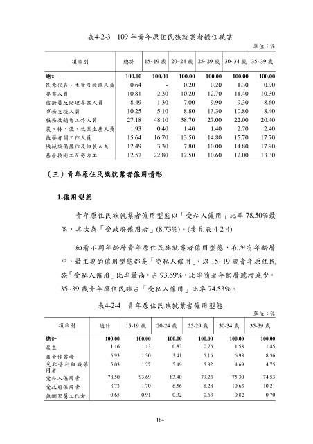 中,最主要的僱用型態都是「受私人僱用」,以 15~19 歲青年原住民