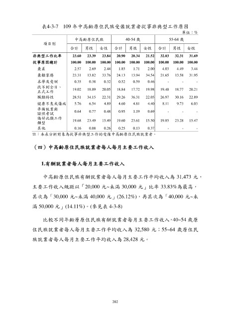 表4-3-7 109 年中高齡原住民族受僱就業者從事非典型工作原因