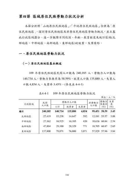 住民族地區」,探討原住民族地區及非原住民族地區勞動力概況,並立基