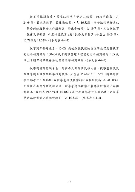 以上者則以從事農林漁牧業的比率相對較高。(參見表 4-4-3)