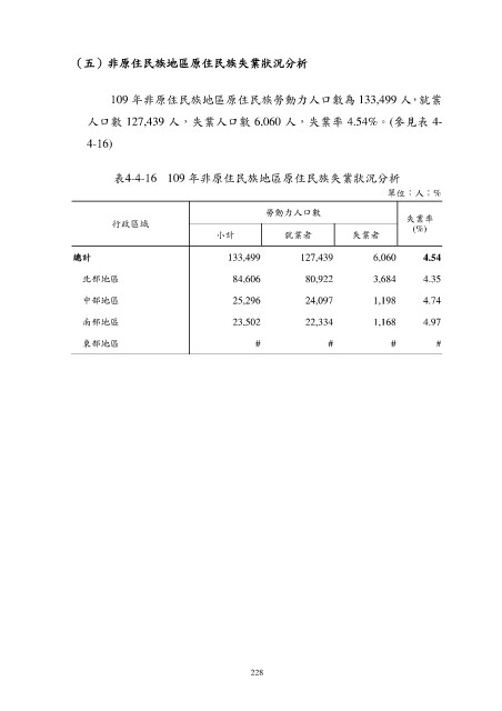 表4-4-16 109 年非原住民族地區原住民族失業狀況分析