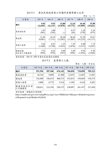 表4-5-1 原住民族就業者工作場所有僱用移工比率