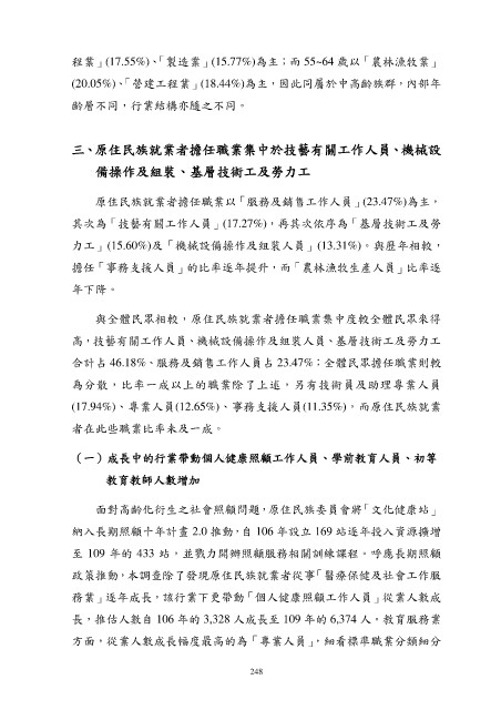 政策推動,本調查除了發現原住民族就業者從事「醫療保健及社會工作服