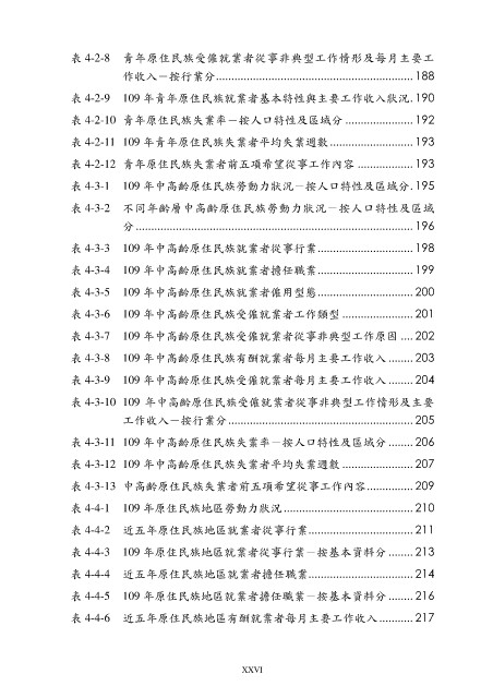 表 4-4-1 109 年原住民族地區勞動力狀況 .......................................... 210