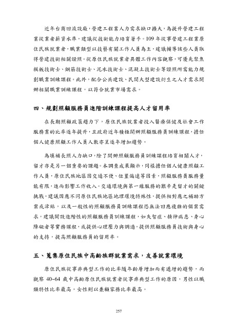 得營建技術相關證照。從原住民族就業者具體工作內容觀察,可優先聚焦