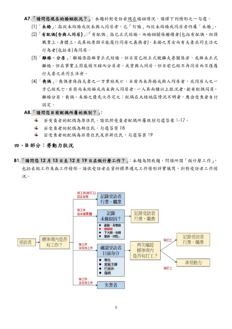 B1.「請問您 12 月 13 日至 12 月 19 日在做什麼工作?」:本題為開放題,問項所謂「做什麼工作」,