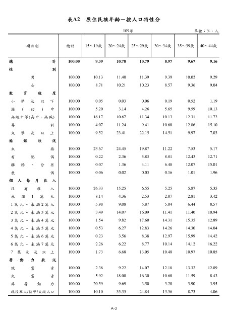 項目別 總計 15~19歲 20~24歲 25~29歲 30~34歲 35~39歲 40~44歲