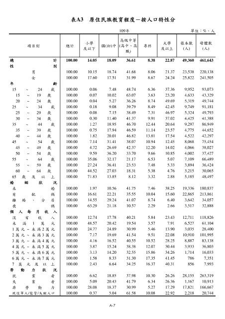 20 ~ 24 歲 100.00 0.04 5.27 36.26 8.74 49.69 5,319 49,744