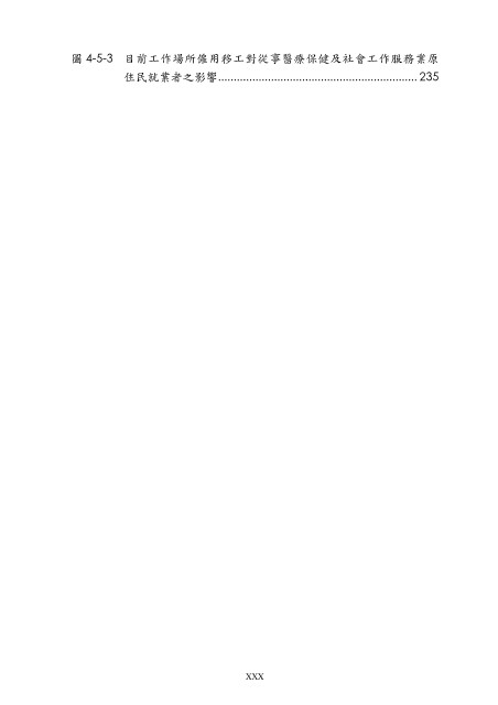 圖 4-5-3 目前工作場所僱用移工對從事醫療保健及社會工作服務業原 住民就業者之影響 ................................................................ 235 XXX