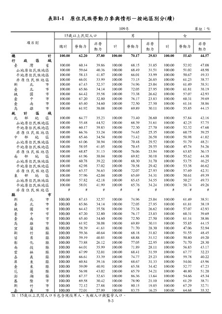 表B1-1 原住民族勞動力參與情形-按地區別分(續)