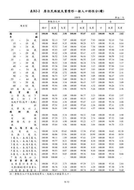 表B2-2 原住民族就失業情形-按人口特性分(續)