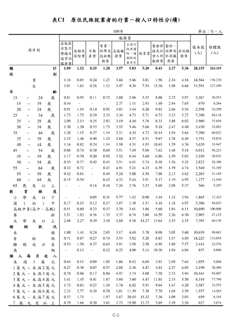 表C1 原住民族就業者的行業-按人口特性分(續)