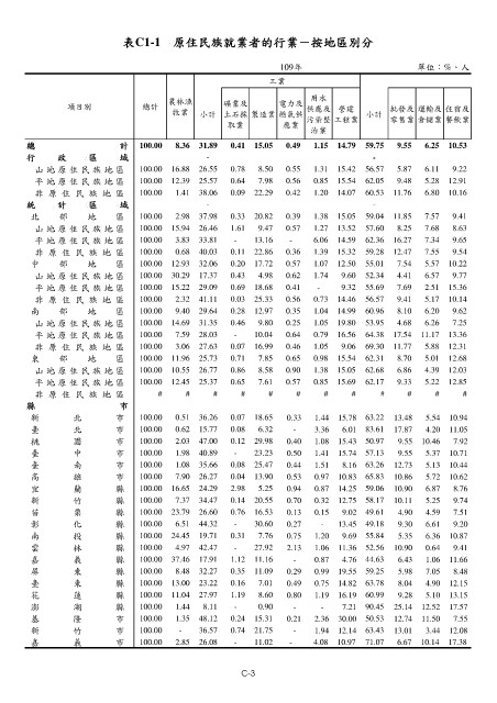 非 原 住 民 族 地 區 100.00 3.06 27.63 0.07 16.99 0.46 1.05 9.06 69.30 11.77 5.88 12.31