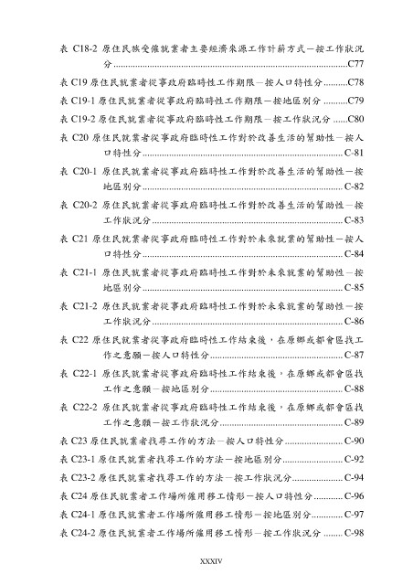 表 C19-1 原住民就業者從事政府臨時性工作期限-按地區別分 .......... C79