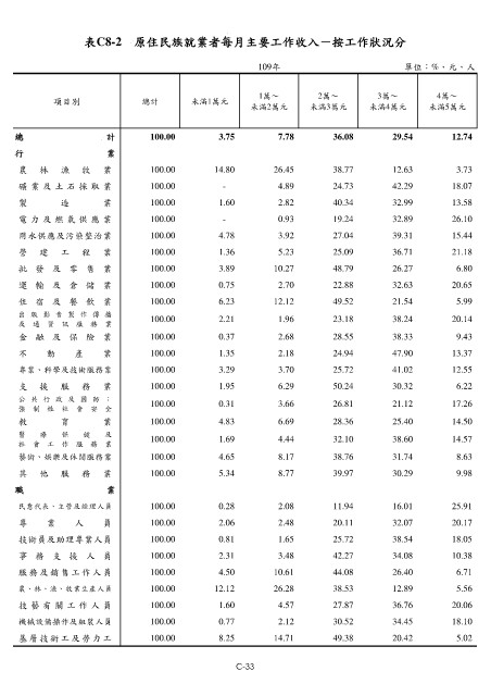 表C8-2 原住民族就業者每月主要工作收入-按工作狀況分