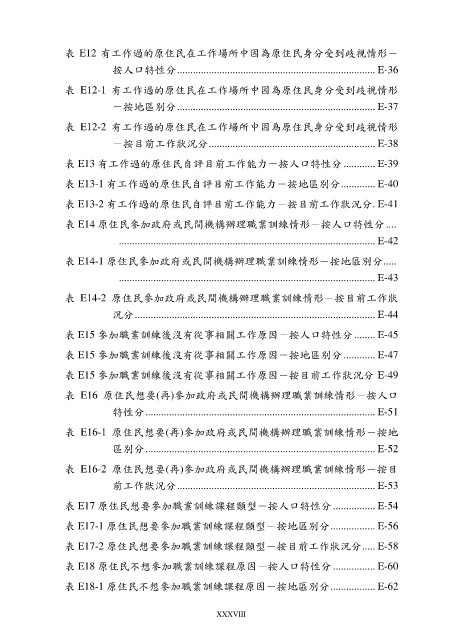 表 E18 原住民不想參加職業訓練課程原因-按人口特性分 ................ E-60