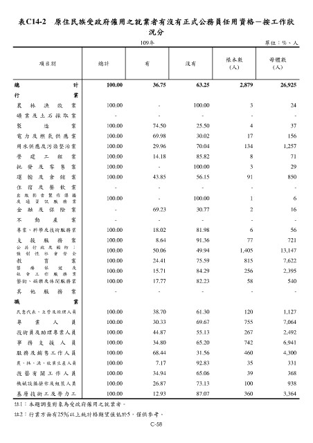 表C14-2 原住民族受政府僱用之就業者有沒有正式公務員任用資格-按工作狀