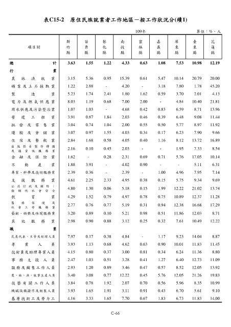 表C15-2 原住民族就業者工作地區-按工作狀況分(續1)
