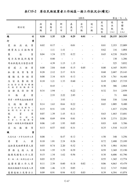 表C15-2 原住民族就業者工作地區-按工作狀況分(續完)