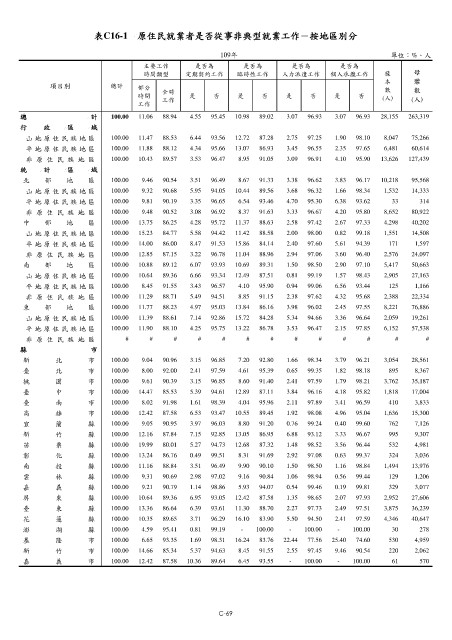 表C16-1 原住民就業者是否從事非典型就業工作-按地區別分