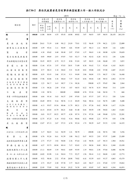 表C16-2 原住民就業者是否從事非典型就業工作-按工作狀況分