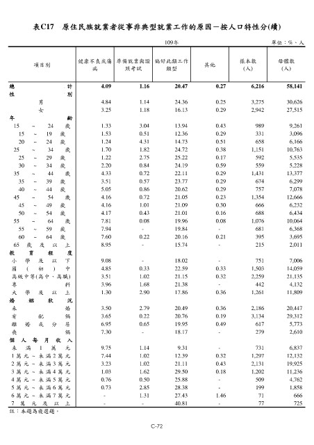 表C17 原住民族就業者從事非典型就業工作的原因-按人口特性分(續)