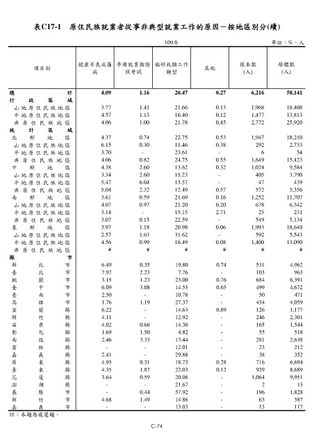 表C17-1 原住民族就業者從事非典型就業工作的原因-按地區別分(續)