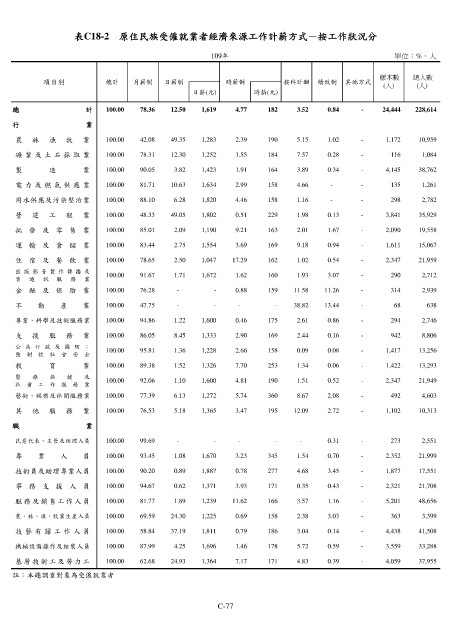 表C18-2 原住民族受僱就業者經濟來源工作計薪方式-按工作狀況分