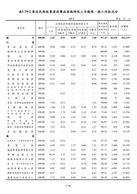 表C19-2 原住民族就業者從事政府臨時性工作期限-按工作狀況分