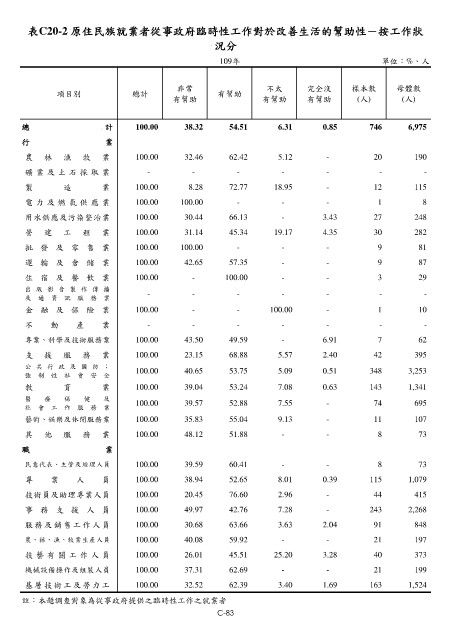表C20-2 原住民族就業者從事政府臨時性工作對於改善生活的幫助性-按工作狀