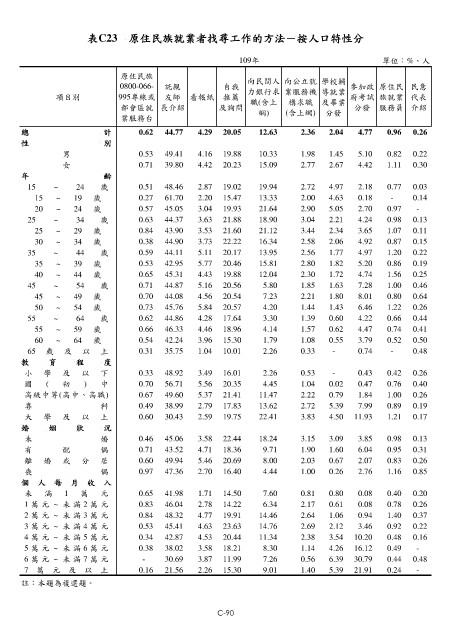 表C23 原住民族就業者找尋工作的方法-按人口特性分