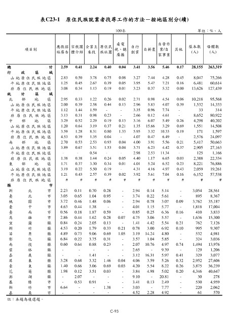 表C23-1 原住民族就業者找尋工作的方法-按地區別分(續)