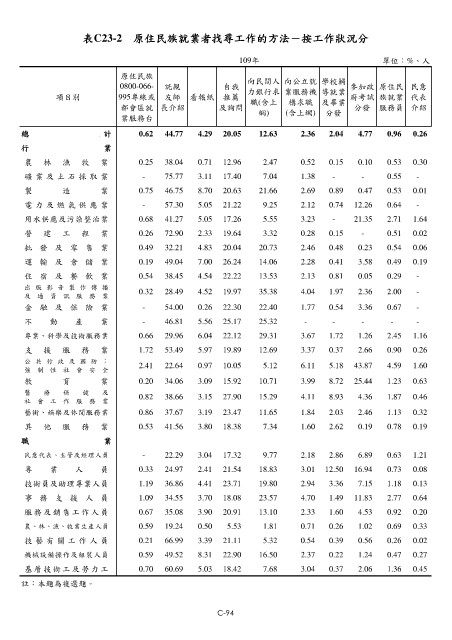 表C23-2 原住民族就業者找尋工作的方法-按工作狀況分