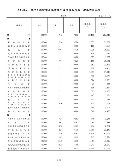 表C24-2 原住民族就業者工作場所僱用移工情形-按工作狀況分