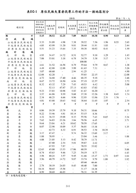 表D2-1 原住民族失業者找尋工作的方法-按地區別分