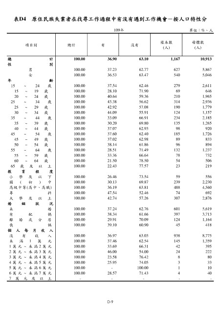 表D4 原住民族失業者在找尋工作過程中有沒有遇到工作機會-按人口特性分