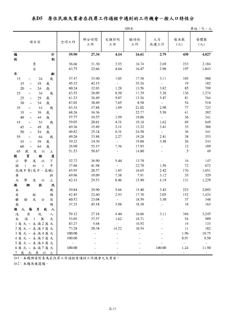 表D5 原住民族失業者在找尋工作過程中遇到的工作機會-按人口特性分