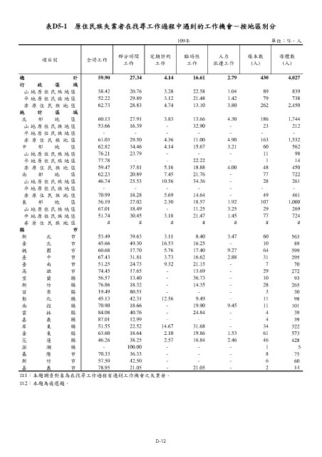 表D5-1 原住民族失業者在找尋工作過程中遇到的工作機會-按地區別分