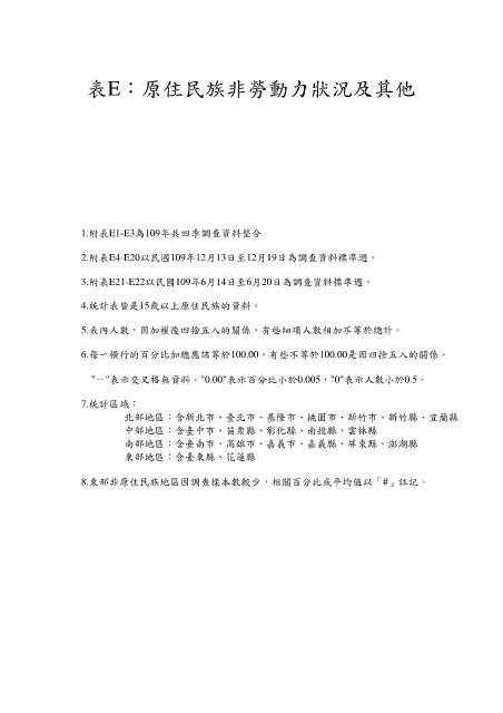 表E:原住民族非勞動力狀況及其他