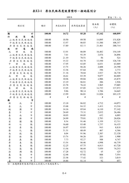 非 原 住 民 族 地 區 100.00 23.78 76.22 3,965 37,085