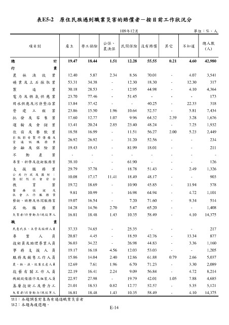 表E5-2 原住民族遇到職業災害的賠償者-按目前工作狀況分