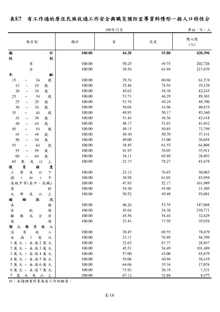 表E7 有工作過的原住民族收過工作安全與職災預防宣導資料情形-按人口特性分