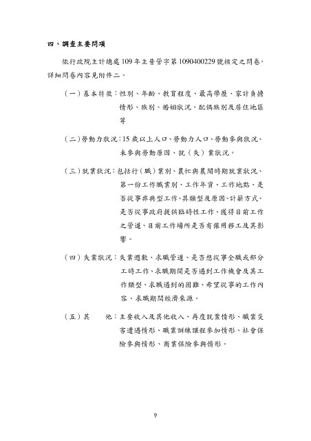 依行政院主計總處 109 年主普管字第 1090400229 號核定之問卷,
