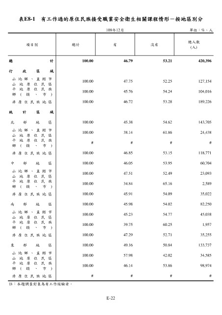 表E8-1 有工作過的原住民族接受職業安全衛生相關課程情形-按地區別分