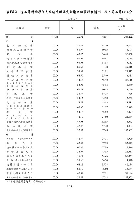 表E8-2 有工作過的原住民族接受職業安全衛生相關課程情形-按目前工作狀況分