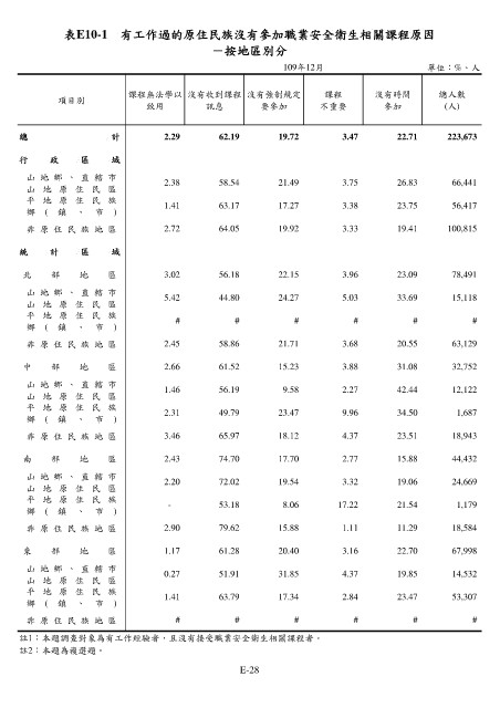 表E10-1 有工作過的原住民族沒有參加職業安全衛生相關課程原因