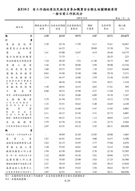 表E10-2 有工作過的原住民族沒有參加職業安全衛生相關課程原因