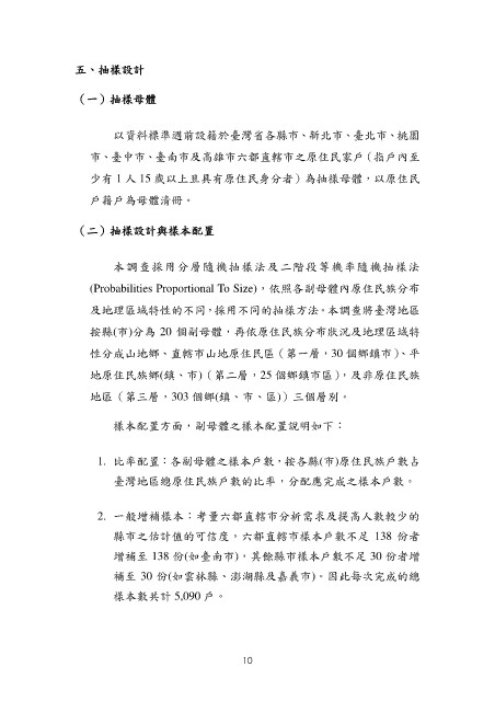 及地理區域特性的不同,採用不同的抽樣方法。本調查將臺灣地區